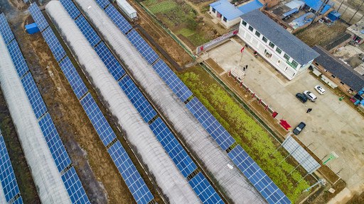 科学利用蔬菜种植地块建光伏发电场,既不影响农耕生产又为官杨村年增100多万元的收入。