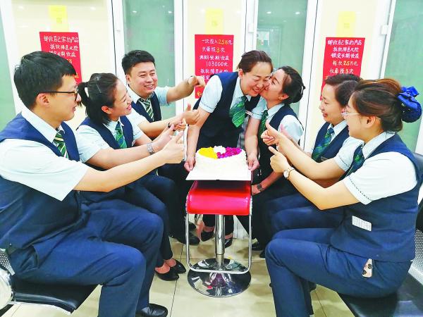 5月21日,中国邮政集团公司鸡西市分公司园林营业所所长周婕在夕会结束时,为网点员工们奉上了一份满载爱心的大蛋糕,希望园林营业所这个年轻的团队与爱同行,用爱心服务好每一位客户。