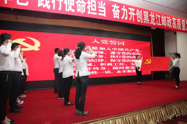 7月1日,中国邮政集团公司黑龙江省分公司召开庆祝建党98周年暨学习先进榜样推动主题教育大会,表彰了全省邮政先进基层党组、优秀共产党员、优秀基层党组织书记和优秀党务工作者,举行了省分公司直属机关新发展预备党员入党仪式,最后观看了讲述黑龙江先进典型光辉事迹的专题教育片《楷模》。