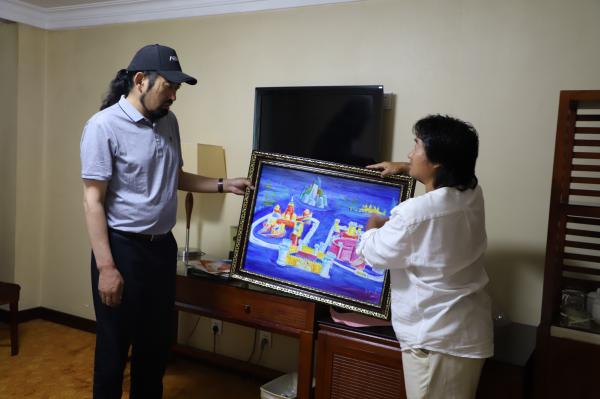 今年4月,其美多吉在北京人民大会堂作报告的时候,马树君长途跋涉2000余公里,将为其美多吉画的画像送到了北京,那是多吉老师收到的第一幅肖像画,“欢迎到美丽的黑龙江做客,期待我们有机会再见面”。8月初,在得知其美多吉将会来哈作报告的消息后,马树君难掩心中的激动之情。