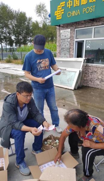通过前期对村里农特产品的调查了解,邮政驻村工作队决定从笨鸡蛋、鹅蛋、毛葱入手,先期开展农产品返城项目。工作队员从农产品包装、品牌设计、流程设计进行整体策划。在包装箱设计上,队员从网上购买便于运输的鸡蛋、鹅蛋包装箱,并设计印制带有黑龙江省邮政分公司驻村工作队精准扶贫的不干胶贴,采取不低于市场价或略高于市场价收购农产品。