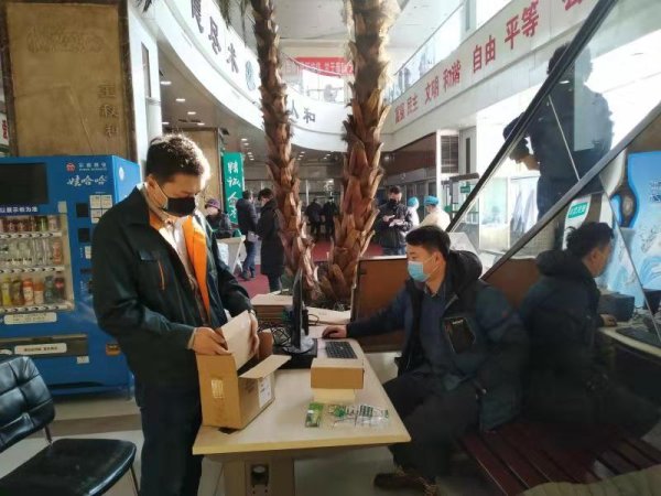 从大年初二以来,刘齐、徐久志就驻扎在黑龙江省中医大二院一楼大厅里设置的临时“邮政收寄点”,说是收寄点,其实一张2米小桌就是他们临时搭建的收寄台席,简单的可以说是简陋。旁边整整齐齐码起的一人多高的邮件就是他们一天的“战利品”。俩人快速地将中成药装箱、打包、录入地址,一整套动作极为麻利、熟练。自哈尔滨车辆限行、部分街道封道之后,他们克服交通不便的困难,坚持每天步行2个余小时上班,每日在医院连续工作8个小时以上。