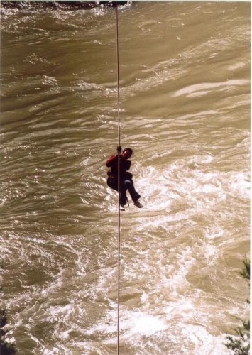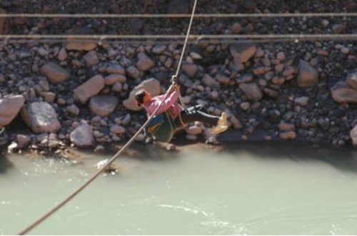 尼玛拉木至今仍记得第一次过溜索的场景:她站在江边,面对呼啸的狂风和咆哮的江水,回忆起沉寂在江中的弟弟,心里一阵阵发怵,鼓不起勇气。 “我鼓励自己,拉木你能行”, 可当钩子挂上溜索的一瞬间,尼玛拉木浑身一点力气都没有了。桑称所长用力推了她一把,就这样,尼玛拉木被吊在半空中,耳边只剩下急促的风声和脚下的滔滔江水声。