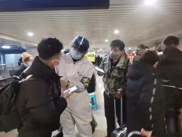 佳木斯火车站日平均到站车次51次,出站旅客13000人左右,火车站疫情防控服务站出口处的主要工作任务是针对每一位出站旅客进行测温、核实大数据行程卡、分流分工做好进站旅客的信息登记和落地查人、落地接人、落地管人等各项工作。根据现阶段的防控要求,他们要对所有进入佳木斯的旅客查验72小时内的核酸报告,没有核酸报告的,严格落实落地即检的管控措施。虽然时刻都面对未知的风险,但这5名邮政党员始终坚守在值守岗位上,不漏一人,耐心引导,真正做到严防死守。每个班次,他们都会提前半个小时到达,认真参加岗前培训,一丝不苟地学习最新的隔离要求,因为他们知道,每一个细小的环节都关乎着百姓的生命安全,关乎着城市的安危。由于进站车次较多,常常是接待完上一个车次就要接下一个车次,每个班连续6个小时的工作奋战,常常水都顾不上喝一口。尤其是在疫情严峻时,他们更是冒着极大的风险,舍小家顾大家冲锋在前线,无论遇到什么因难,他们从来都没有向单位提出任何要求,一直默默地坚守在疫情防控的第一线。