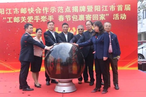 1月27日,阳江市首个“邮快合作”示范点在广东广青金属科技有限公司正式揭牌成立,有效解决该企业4000多名员工收寄快递难题。活动当天,阳江市总工会也正式启动该市首届“工邮关爱手牵手,春节包裹寄回家”活动,为企业异地务工人员给远在家乡的亲人寄去一份心意和关爱,提高他们留在阳江过年的幸福感和获得感。