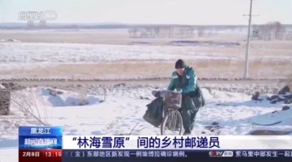2月8日,中央电视台综合频道(CCTV1)12时的新闻30分“不一样春节,一样的坚守”栏目中,播出黑龙江省邮政人春节期间坚守岗位的新闻《“林海雪原”间的乡村邮递员》(时长3分钟);13时,在中央电视台新闻频道(CCTV13)《新闻直播间》,该新闻报道再次被播出(时长4分9秒)。