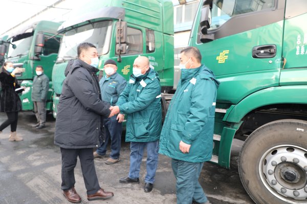 刘斌总经理叮嘱即将出班的邮政驾驶员要注意安全,并送上节日祝福