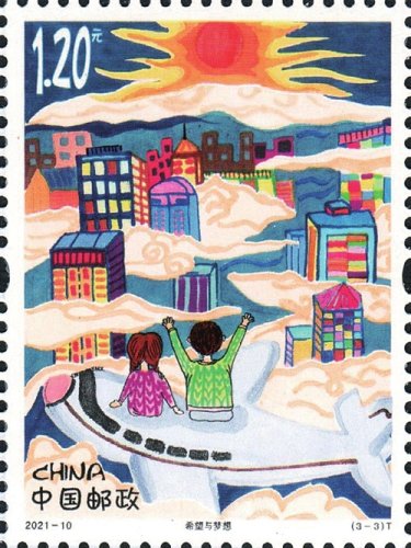 为庆祝中国共产党成立100周年,中华全国集邮联合会、中国邮政集团有限公司、中国宋庆龄基金会联合举办了“永远跟党走逐梦新时代”全国少年儿童邮票创作设计作品征集活动。活动得到了全国各地少年儿童的积极响应,共征集作品18000余幅,涵盖31个省(区、市)的261个地市。这些作品充分展现爱党、爱国、民族大团结等时代主旋律以及人民的美好生活。经专家评审,共评出一等奖20名、二等奖46名、三等奖100名,其中3幅一等奖作品登上《儿童画作品选》特种邮票,于6月1日发行,发行量为700万套。