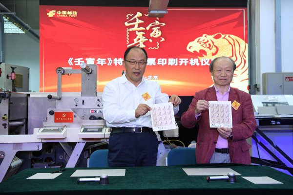 2021年9月16日,中国邮政《壬寅年》特种邮票印刷开机仪式在京举行。中国邮政集团有限公司党组书记、董事长刘爱力,副总经理康宁,《壬寅年》生肖邮票设计者、著名画家冯大中,清华大学美术学院院长、中国美术家协会副主席鲁晓波等出席仪式。仪式中公布了《壬寅年》生肖虎邮票图稿,并启动邮票印制,宣告生肖虎年邮票正式投入生产。