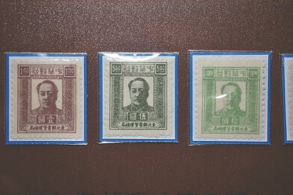 东北解放区第一套毛泽东像邮票,诞生于1946年11月的哈尔滨。这套邮票当时广受解放区军民欢迎。