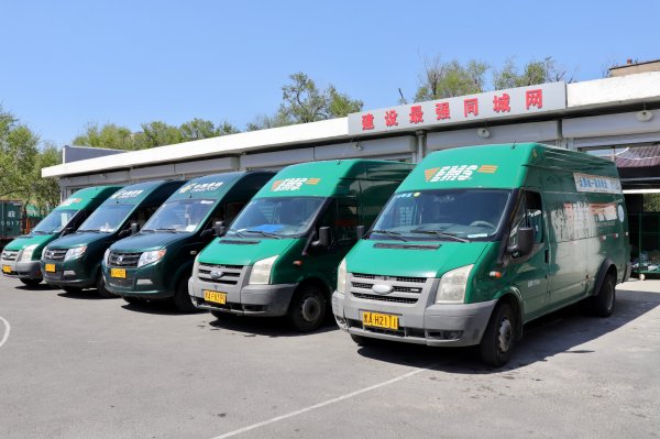 哈尔滨市邮政特快专网正在卸货的物流车辆