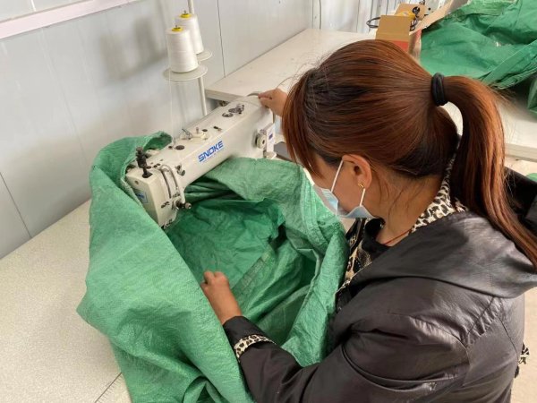 东兴村脱贫户王焕珍十分看重这份工作。她说:“车间离家近,既能赚钱又能照顾还在上学的孩子,感谢政府和邮政企业为我们老百姓办了大好事,我一天大约能缝补40-50条邮袋,大约能赚80元,如果按月干,一个月就是2000元左右,我真是太知足了。”