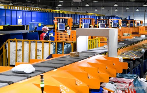 1月8日,中国邮政集团有限公司乌鲁木齐邮区中心忙碌的自动分拣线。中国邮政乌鲁木齐邮区中心陆航处理中心是新疆邮政进出口邮件的生产枢纽。1月1日-7日,共处理邮件305万件,同比增长110%。邮区中心2023年“春节不打烊”,全力满足节日期间商家、消费者寄递需求。