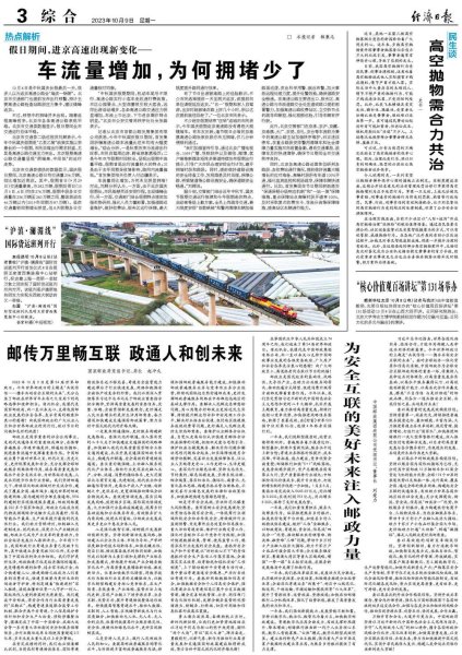 邮政业是国民经济的基础性、战略性、先导性产业,在助力公共服务均等化、推动流通方式转型、促进消费升级等方面都发挥着重要作用。今年以来,我们坚定贯彻习近平新时代中国特色社会主义思想和党的二十大精神,扎实开展主题教育,着力推动高质量发展,持续打造核心竞争优势,加快推进战略任务落地,取得了显著成效,在《财富》世界500强中位列第86位,连续4年跻身百强行列。