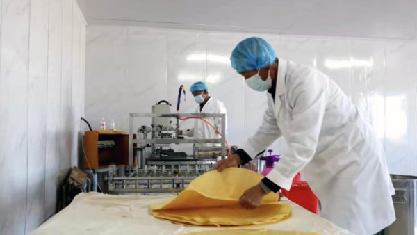走进村里现有的煎饼加工厂地,两位身穿白大褂,戴着口罩和手套的大爷正在机器前忙碌。加料、机器操控、装袋封口,别看两位农村老大爷都已经70岁了,整套流水作业如行云流水。提起煎饼的加工,两位大爷都很自豪,“别看我们年龄大了,我们学会了技术在家门口就能给家里多增收。”在大爷们娴熟的操作下,一张张金黄色又大又圆的煎饼被生产出来,让人看着就喜欢,更别说玉米的香甜萦绕在鼻尖,真是让人流连忘返。