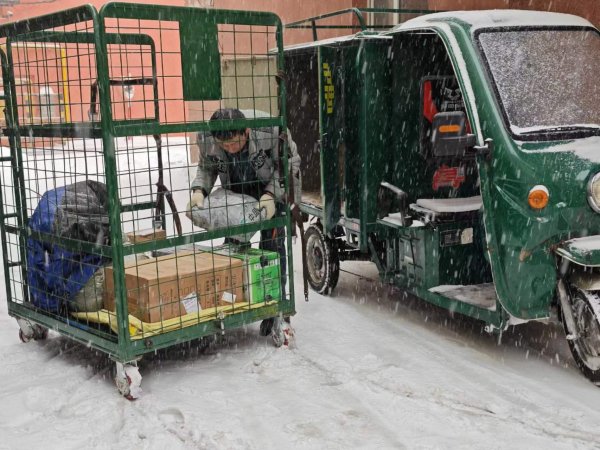 面对暴雪和“双11”的双重压力,黑龙江省邮政分公司迅速启动地市、县、投递部三级应急预案,加密加密直达干线运输频次,加密市内趟运输频次。针对异常天气导致的邮路遇阻,各地市县邮政分公司灵活指挥高度,全力缓解运能压力,同时提前部署好邮车应急停靠场地及邮件临时储备场地。各地市邮政分公司组织投递人员、家属、机关支援人员全力以赴做好进口邮件投递工作,克服连续降雪、道路阻断、黑天早等困难,通过增加机动车、中转接力、驻点投递、小夜班投递等方式加快投递速度。部分车辆无法通行的街路、小区采取步行方式进行投递,最大限度保证进口邮件处理时限,做到能投尽投。