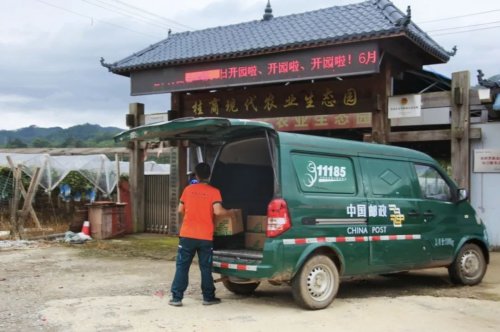 在广西凭祥桂商现代农业生态园里,邮政工作人员正将一箱箱打包好的葡萄搬上邮车,准备发往各地。