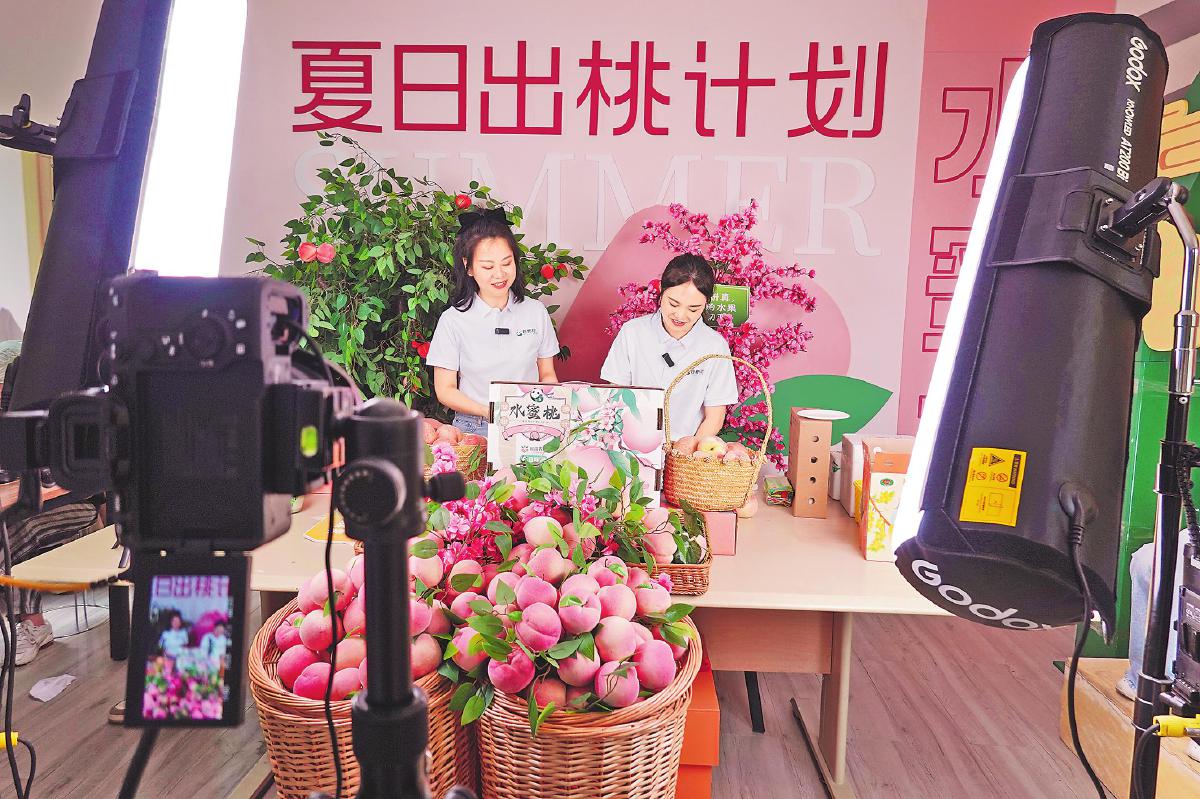 龙泉驿水蜜桃邮政溯源直播,送出夏日甜蜜。□黄丽云 摄
