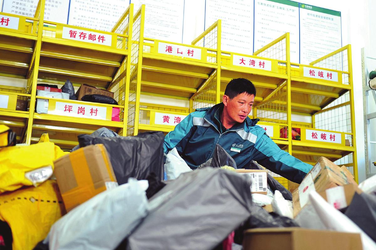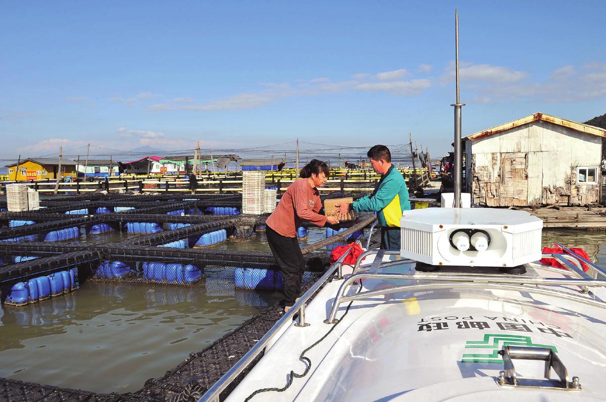 如今,石进全投递的邮件大都是渔民网购的商品。  □吕文礼 摄