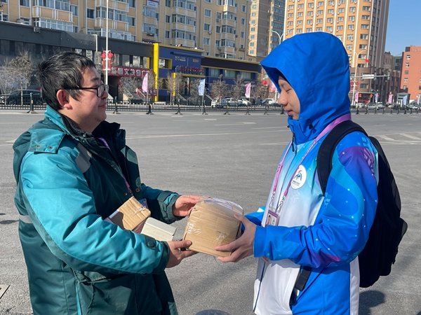 从早忙到晚,中午在街边匆匆吃上一口,投递的路上洒满了汗水,“连轴转”成了亚冬会赛区4名投递员的工作常态。因为赛区服务面积大,有的区域禁止进入,他们只能在室外零下20多度的低温下等待,这既需要坚定的毅力,更需要责任与担当。