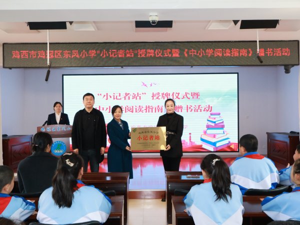 活动现场,鸡西市邮政分公司邮政业务部负责人与《小学阅读指南》杂志社主编、编辑部主任共同为鸡冠区东风小学等三所学校授牌成立“小记者站”。此次活动旨在“以观察促思考、以写作炼表达”,鼓励学生积极关注校园生活与社会热点,通过参与采编实践,不断提升学生的信息整合、语言表达和思辨能力。