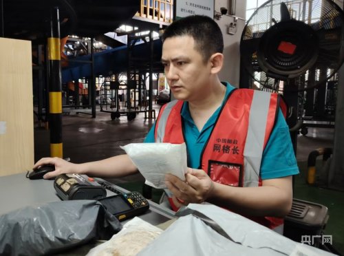 毛自学在海口国际邮件交换站处理国际邮件(央广网记者 付美斌 摄)