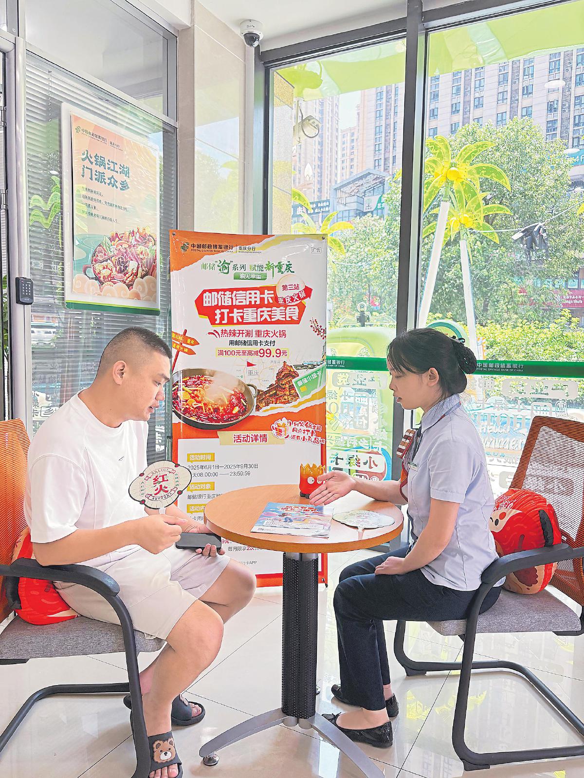 立足产业特色,该支行还推出了“火锅产业贷”,以专业的金融服务为当地特色产业注入强劲动力。同时,该支行积极联系网点周边火锅商户,推出了信用卡立减活动。“真的是太划算了,我们家附近很多火锅店都能享受邮储银行信用卡的优惠。外地的朋友们暑期来重庆旅游,我都要带他们尝尝地道的火锅。”客户王女士开心地说道。
