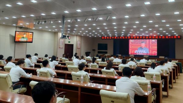 9月3日,黑龙江省邮政分公司领导班子成员、省寄递事业部领导班子成员,省分公司机关各部室、直属各单位干部员工集中观看了纪念中国人民抗日战争暨世界反法西斯战争胜利80周年大会直播。同时,各地市、县邮政分公司也纷纷组织干部员工进行观看。大家目光聚焦屏幕,怀着对历史的敬畏、对先烈的缅怀,静静等候这一庄严时刻的到来,现场氛围庄重而热烈。
