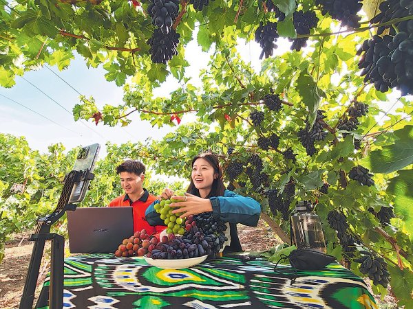 “葡萄进入成熟期以来,两周时间我们已进行5场直播,还联系当地‘网红’,在其直播间上架链接,以进一步提升产品的知名度。”伊宁县分公司副总经理佟岩军介绍说。