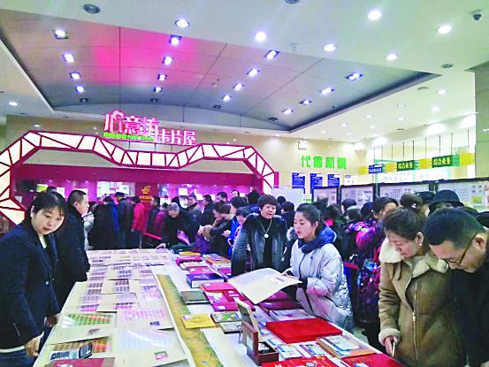 《己亥年》特种邮票发行的前两天,牡丹江集邮爱好者就在牡丹江市太平路邮政营业大厅门前自发开始排队。《己亥年》特种邮票发行当天,牡丹江市分公司、牡丹江市集邮协会在牡丹江市太平路邮政营业大厅举行了“阖家团圆 五福临门”2019年《己亥年》特种邮票首发式暨牡丹江生肖文化大集。牡丹江市分公司为广大邮迷准备了丰富的生肖邮品,受到大家的喜爱(图②)。同时在现场还举办了小型生肖邮展,受到集邮爱好者的欢迎和好评。